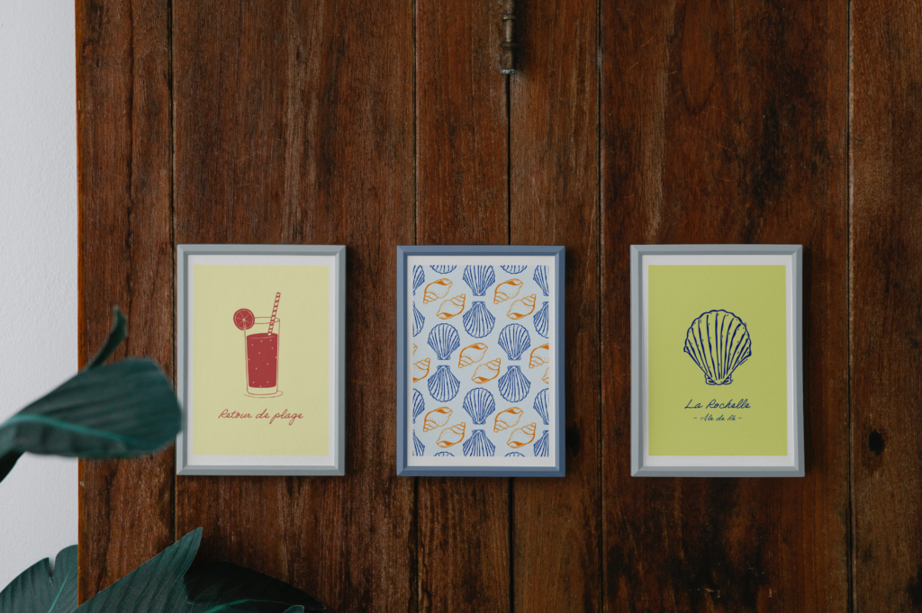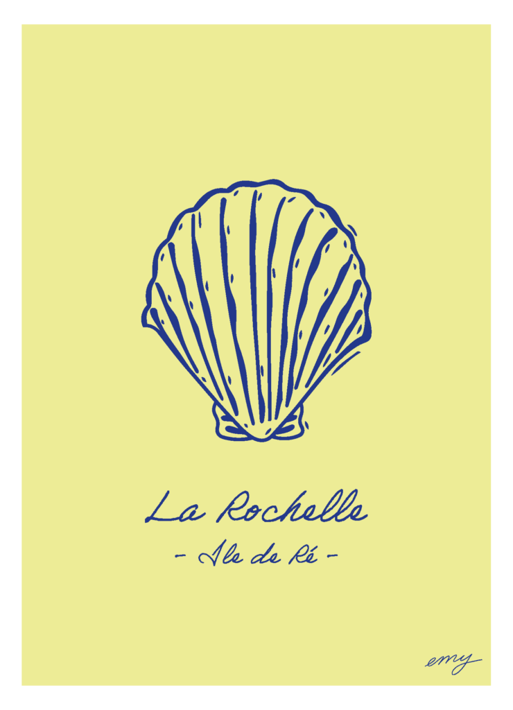 Illustrations réalisées sur Procreate (tablette) puis vectorisées sur Illustrator. Collection pensée comme une série de cartes postales et affiches souvenirs de La Rochelle.