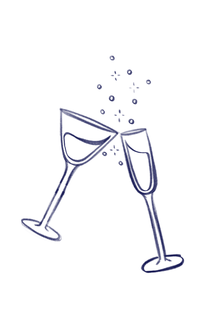 Illustration réalisée sur Procreate (tablette), inspirée de notre cher « Santé ! » et nos verres levés pour célébrer chaque moment de la vie.